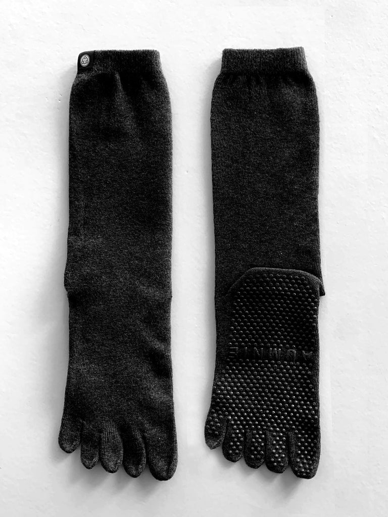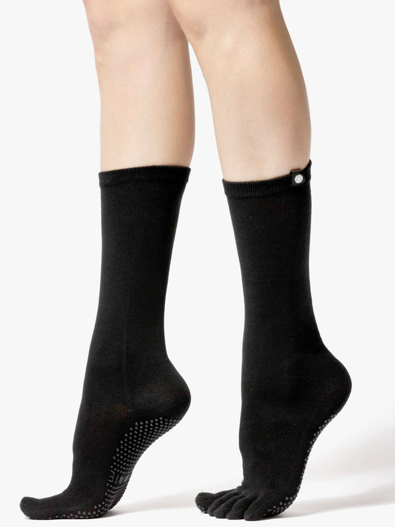 KNEE HIGH FULL TOE YOGA SOCKS, BLACK