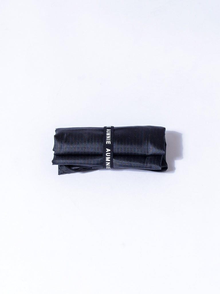 ロゴ入りのゴムひもで簡単に折りたたみ、結ぶことができます。