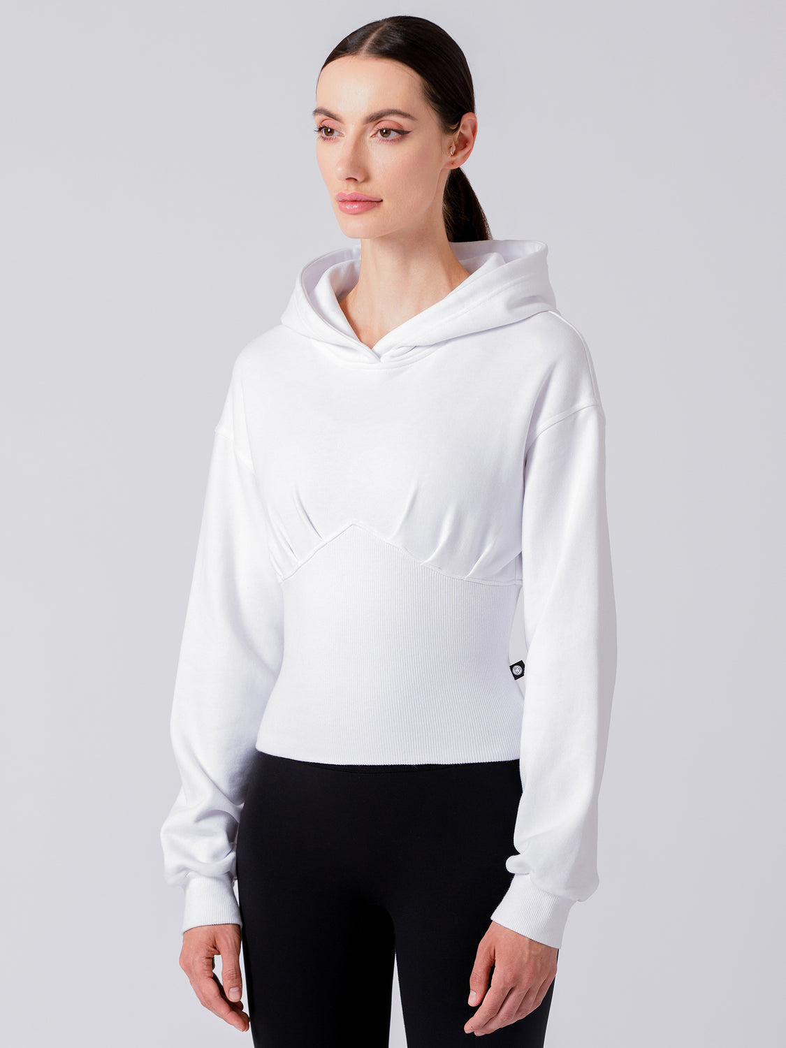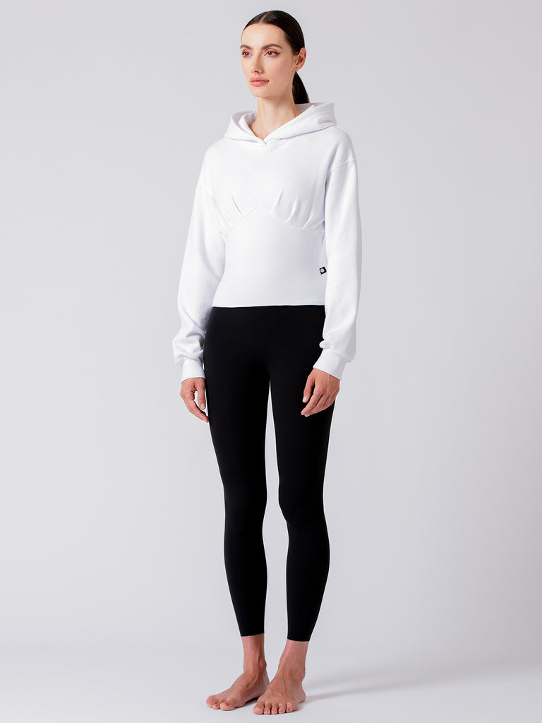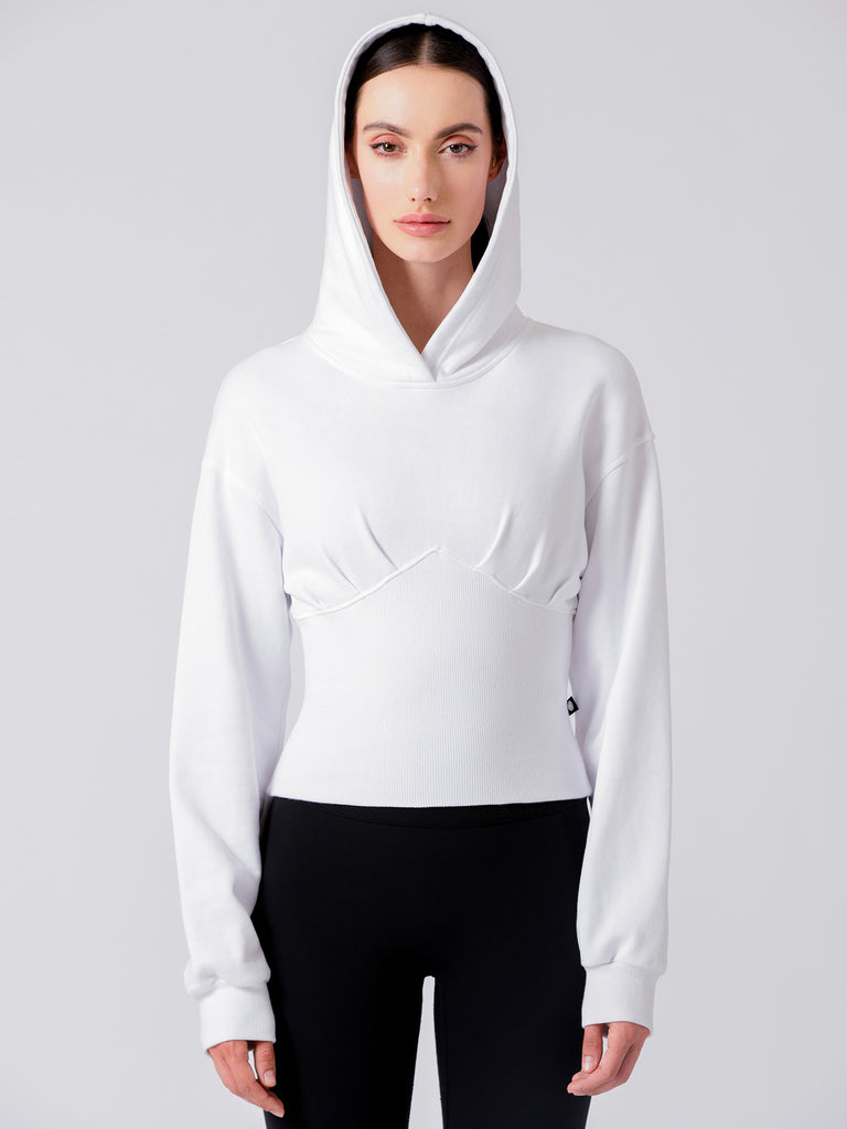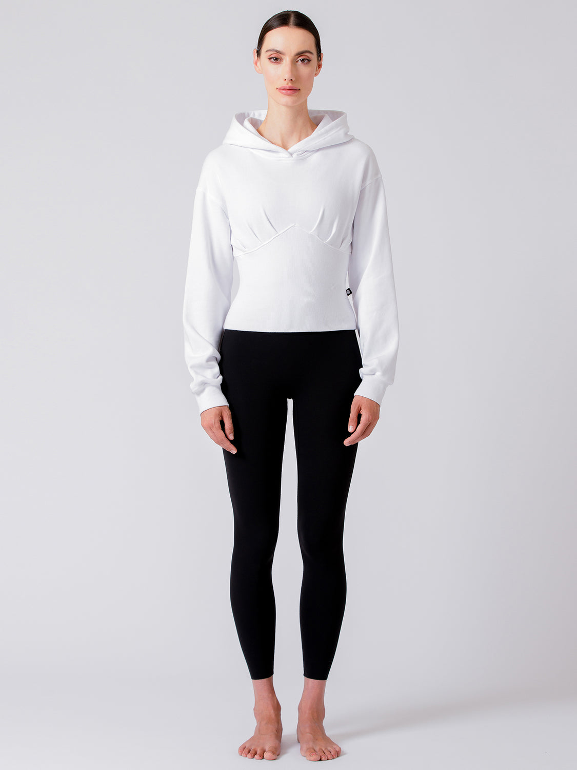 リラックスしたラウンジスタイルにフェミニンなエレガンスをプラス。ソフトな天然コットンで作られたギャザー入りのバストとリブのコルセットが、スタイルを引き立てつつ快適さも両立。