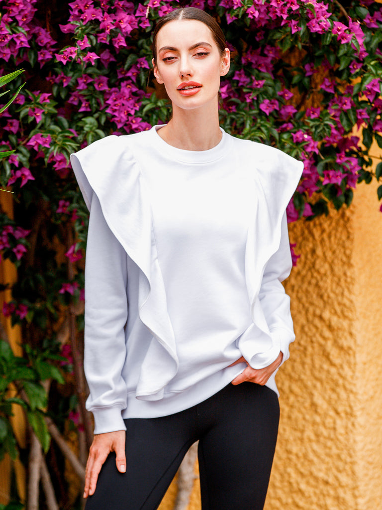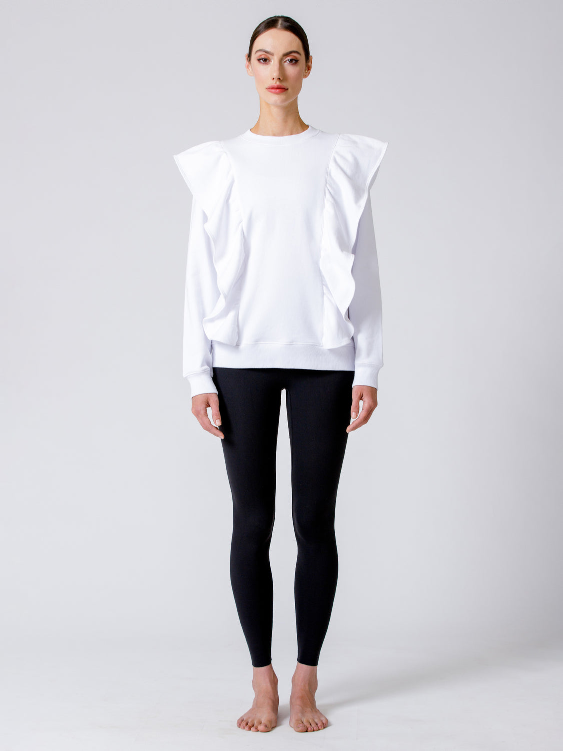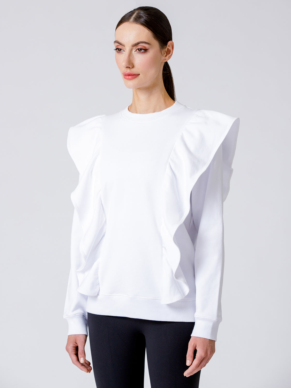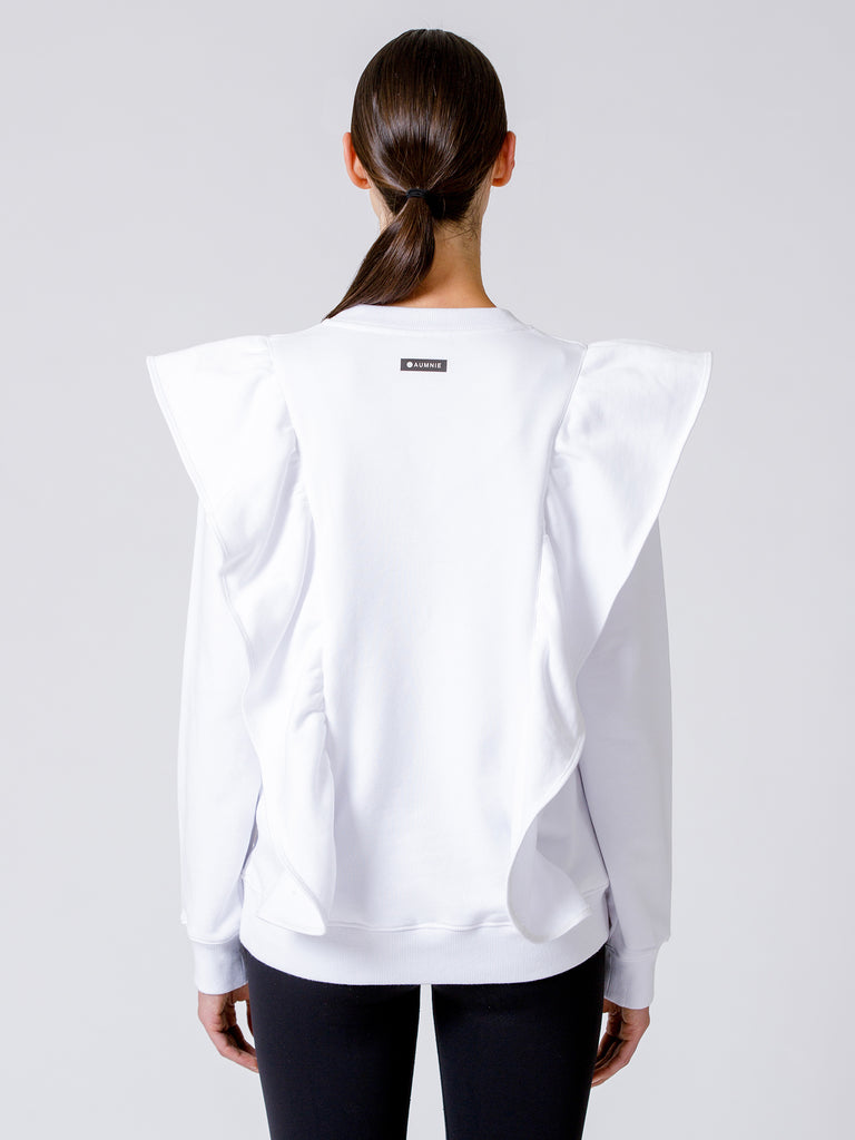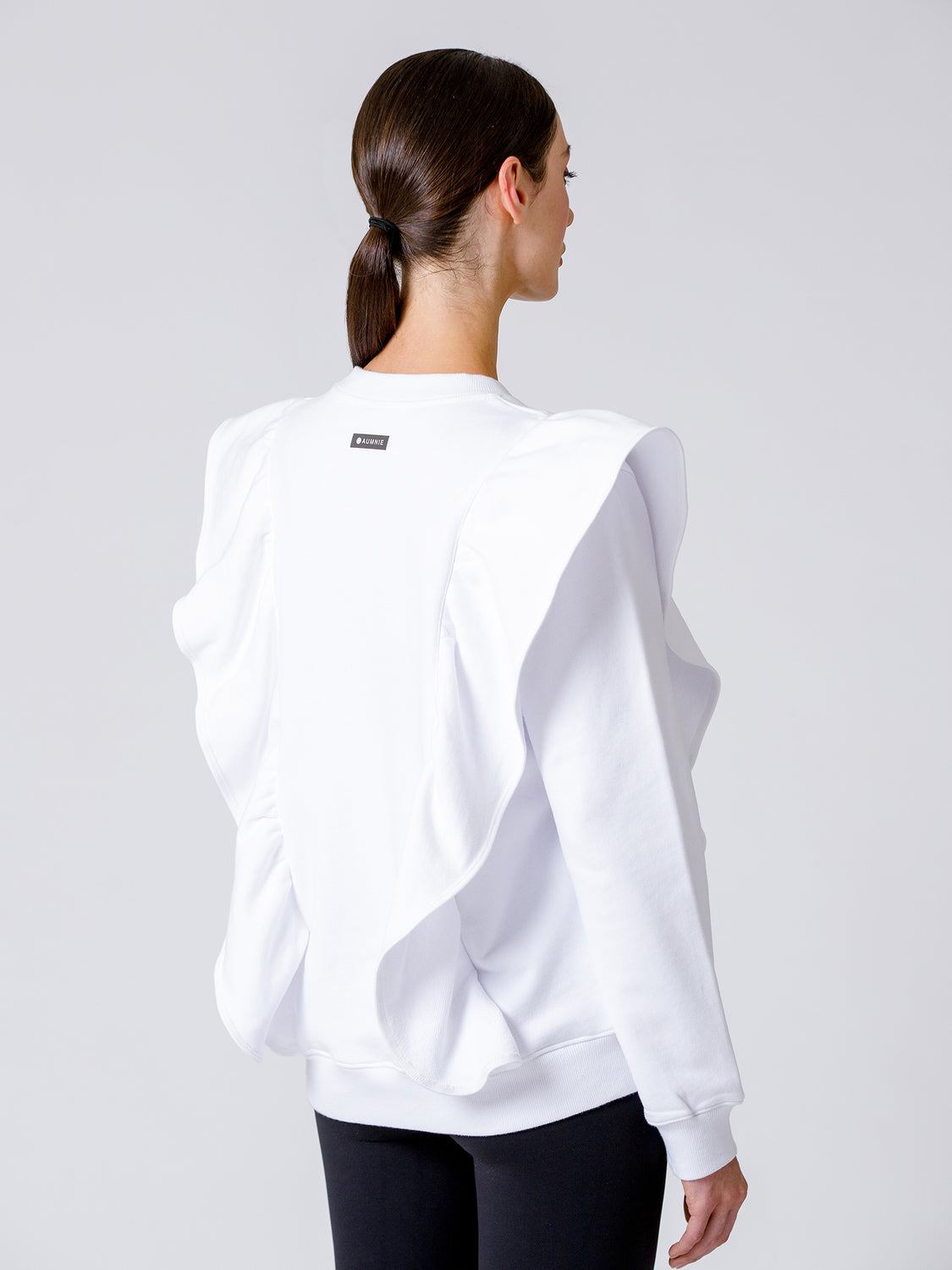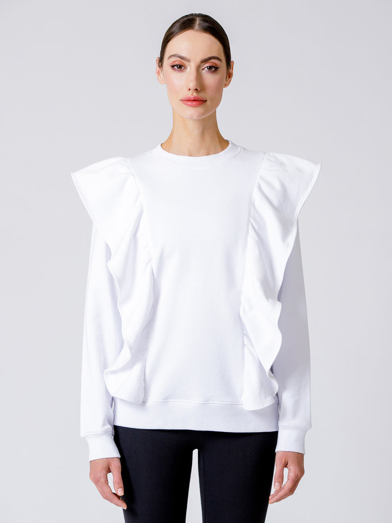 EMPOWER RUFFLED SWEATSHIRT, WHITE