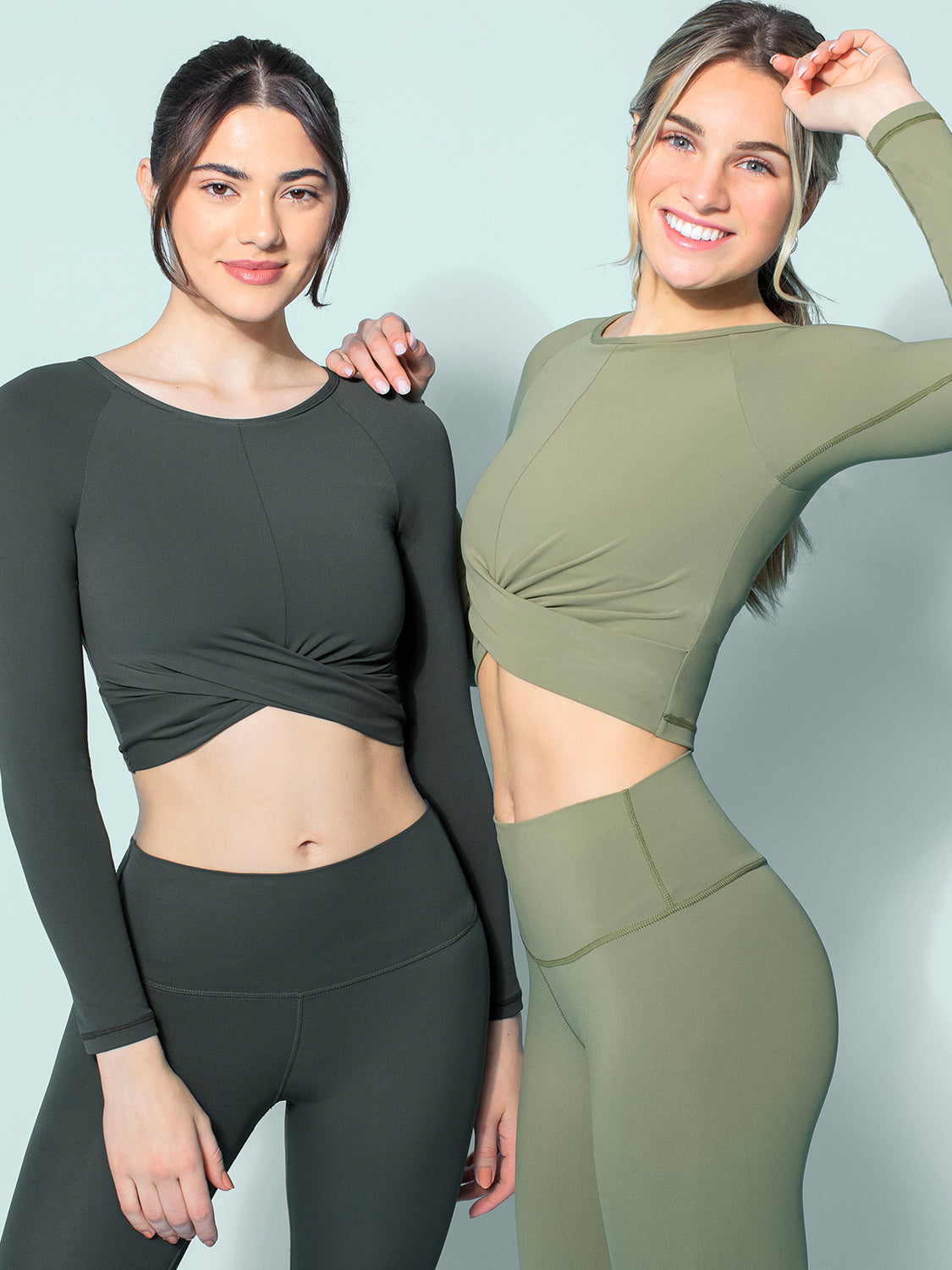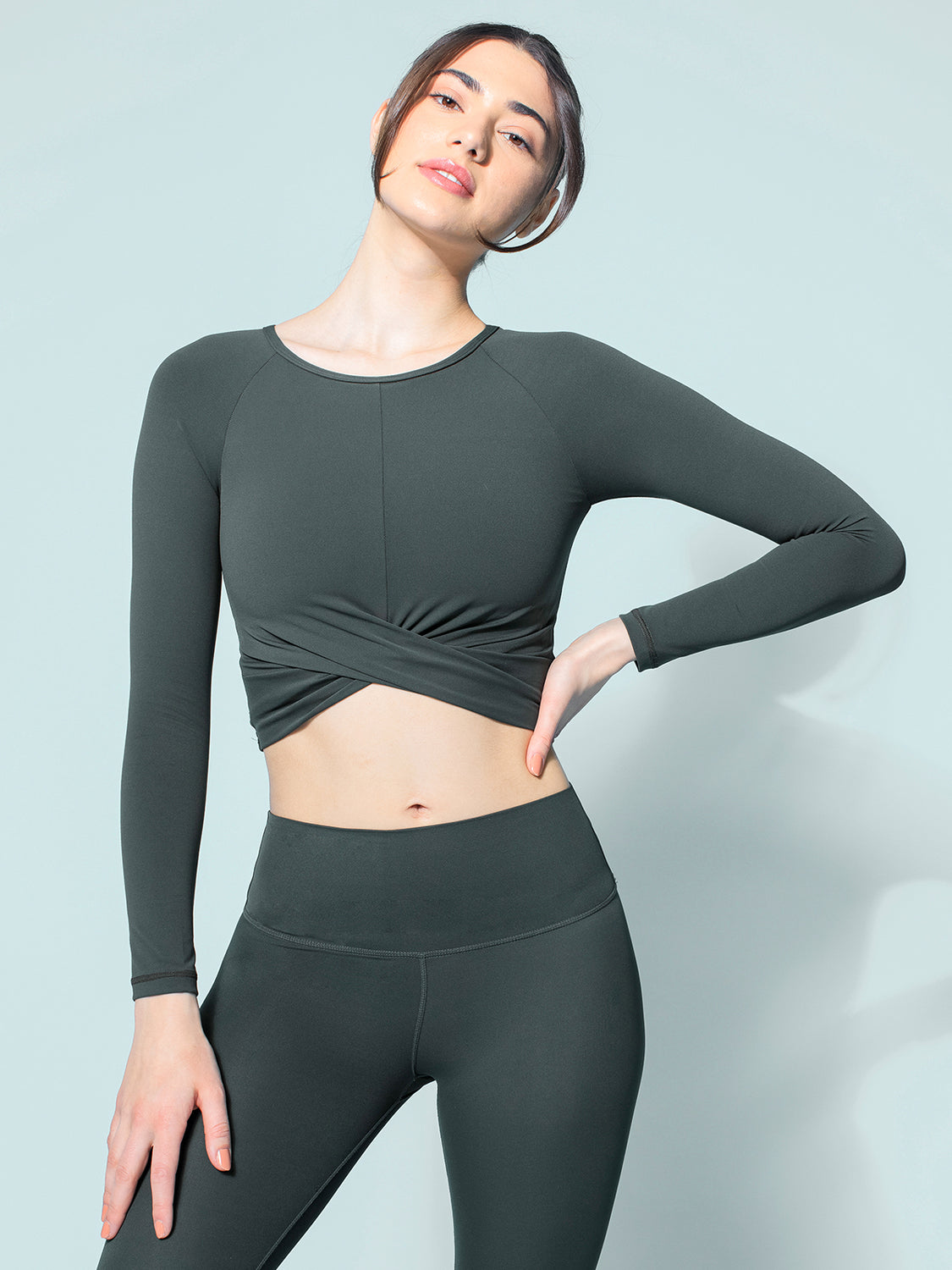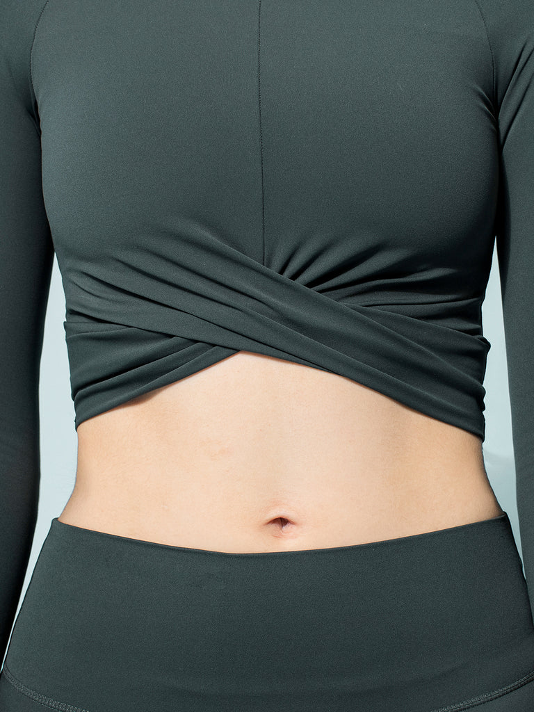 NUDE FRONT WRAP LONG SLEEVE TEE, DEEP FOREST