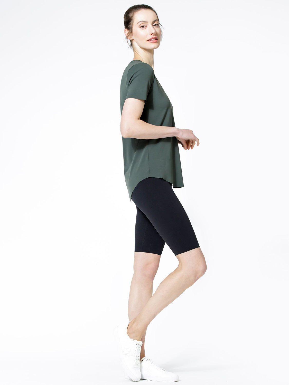 ヒップが隠れる丈。非常にソフトな肌触りの吸湿速乾性・伸縮性に優れた高機能素材を使用し、動きを妨げないストレスフリーな着心地。