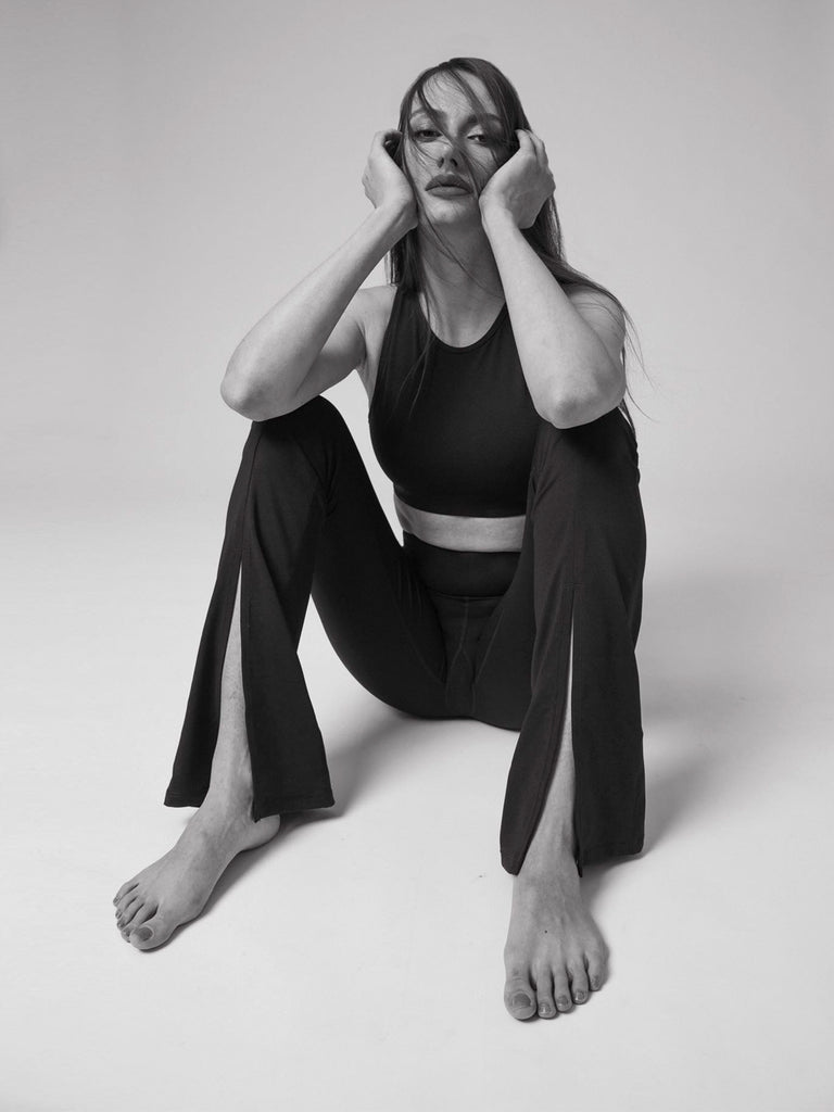 DIVINE FRONT SPLIT FLARE PANTS, BLACK