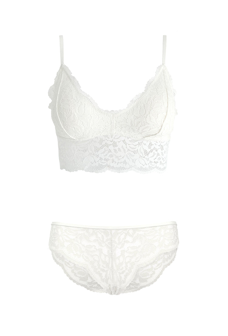 美しいレースが目を引く、フェミニンかつ上品なブラとショーツのセット
